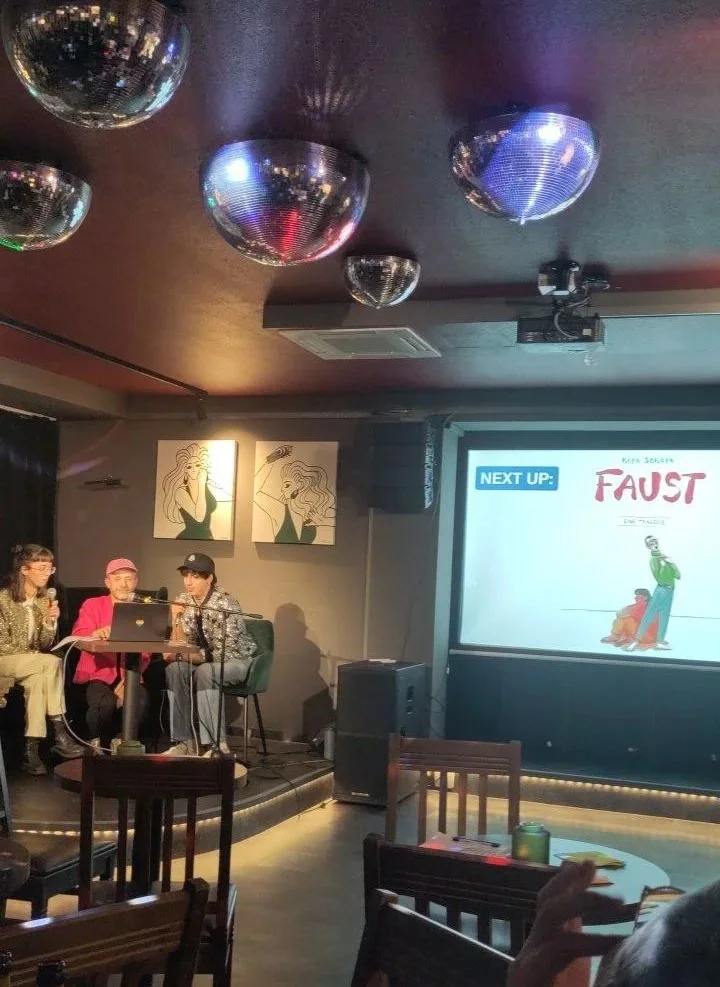 Bei Comic- oder Roman-Lesungen entsteht zwischen Publikum und Autorin ein Raum, in dem die Geschichten Platz haben, sich zu entfalten. Für die Zuhörenden gibt es die Möglichkeit, in den Austausch zu kommen und Antworten auf ihre Fragen über die Bücher, das Schreiben, Zeichnen und Erzählen zu finden.